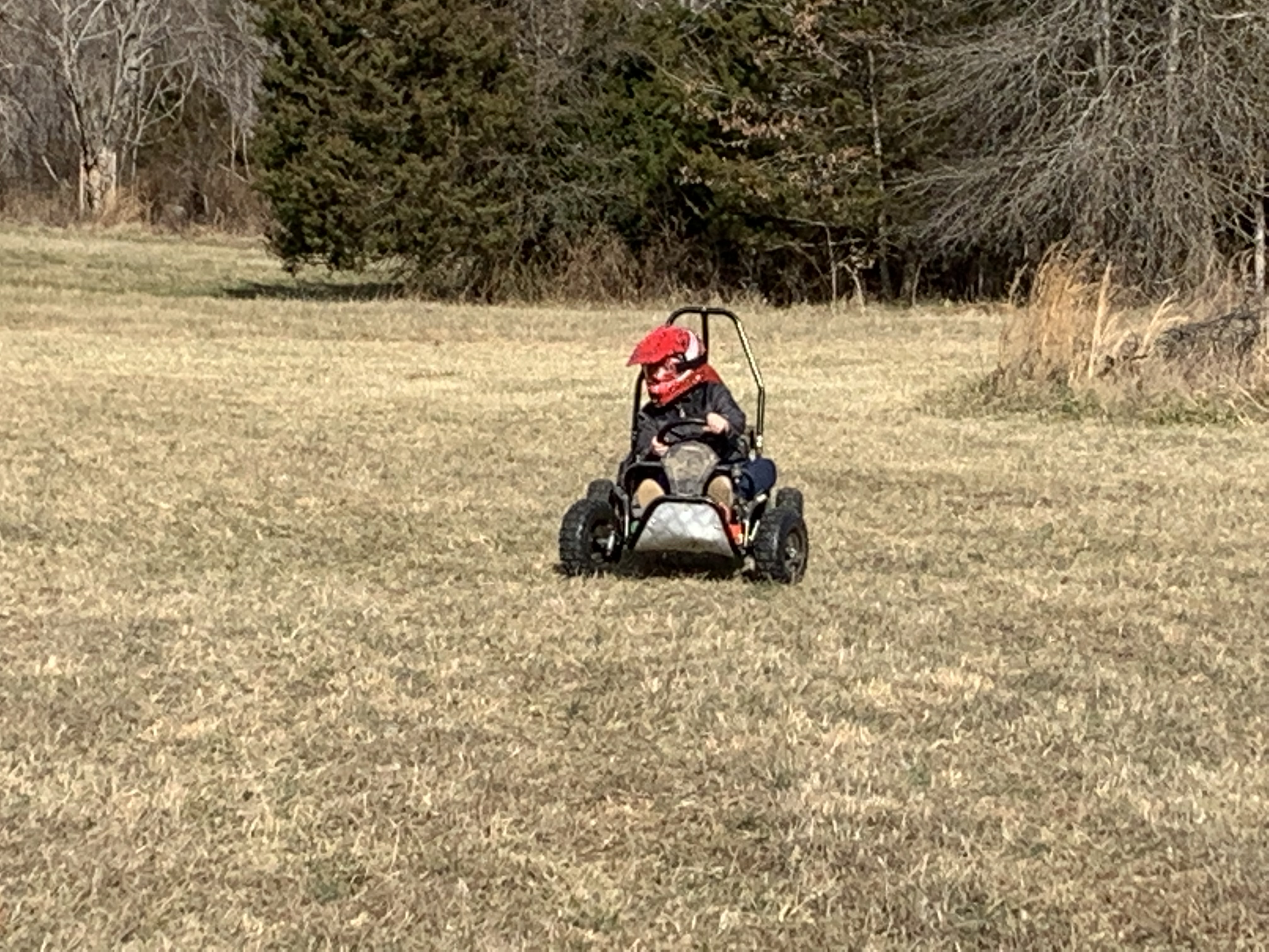One day after my birthday, I got a huge package from Gramma. “What could it be,” I thought. It was a go cart! I asked Dad if we could build it and he said, “Yes”. We started building and after a few hours of it we went to eat. Day after day we worked on it and soon we got the go cart completed and it was ready for testing. I went zooming across, the yard, it worked! Soon Abby (my sister) and I were racing around the yard.