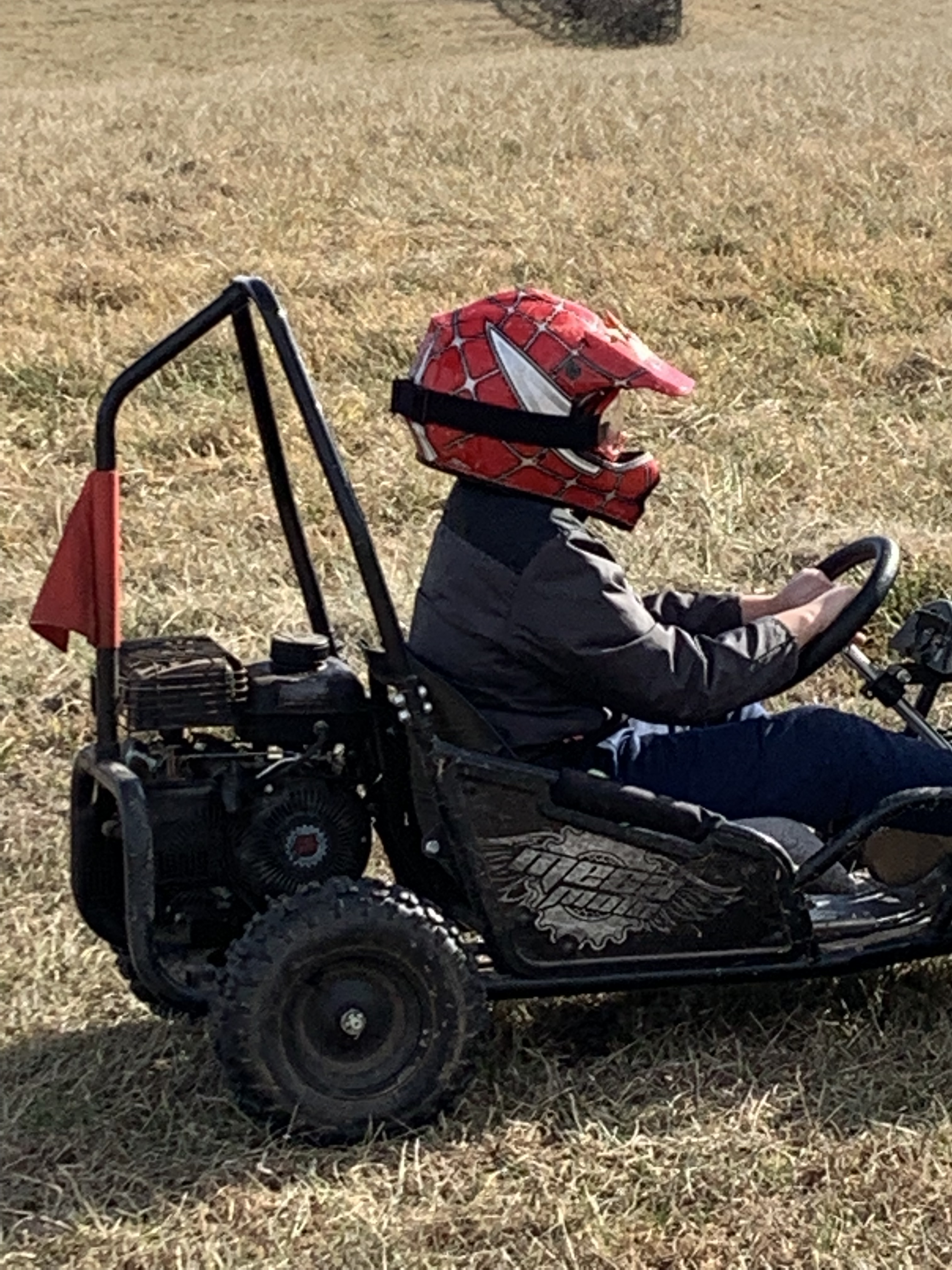 “Hey papa, can I go ride my go cart?” “Sure, but let me put gas in it first.” He said. I am just about to take my go cart for a spin when my sister came out to join in my fun after doing her schoolwork. We took turns and WWWWWWHHHHHHHOOOOO! we screamed as we zoomed around the property.