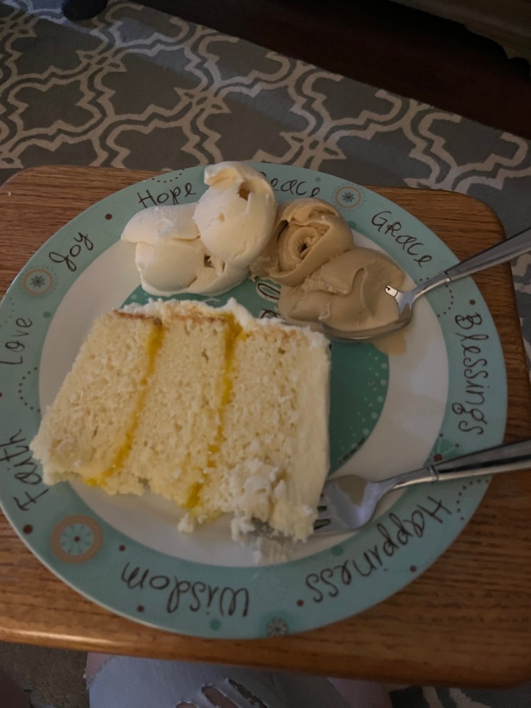 Later that afternoon, at about 4:30, Nana paints my nails while mom fixes dinner! An hour and 30 minutes minutes later I am opening my birthday presents, and as I come to the last thing I am shocked as I slowly unwrap an iPhone 13!!!! Mom shows me how to use it and soon we are all on our phones figuring out how to add mine to each of theirs! Not long after presents, we are feasting on pizza and watching the new Black Panther movie, and boy was it good! For my birthday mom made a lemon cake with lemon curd in the center and lemon butter cream frosting!! It was delicious and so was the ice cream! We had vanilla, caramel, and chocolate ice cream from Gelati Celesti’s. At about 11:30 we went to bed. I am so thankful for all the hard work Mom and Dad put into my birthday and I can’t wait for the continuation of my birthday celebration tomorrow!