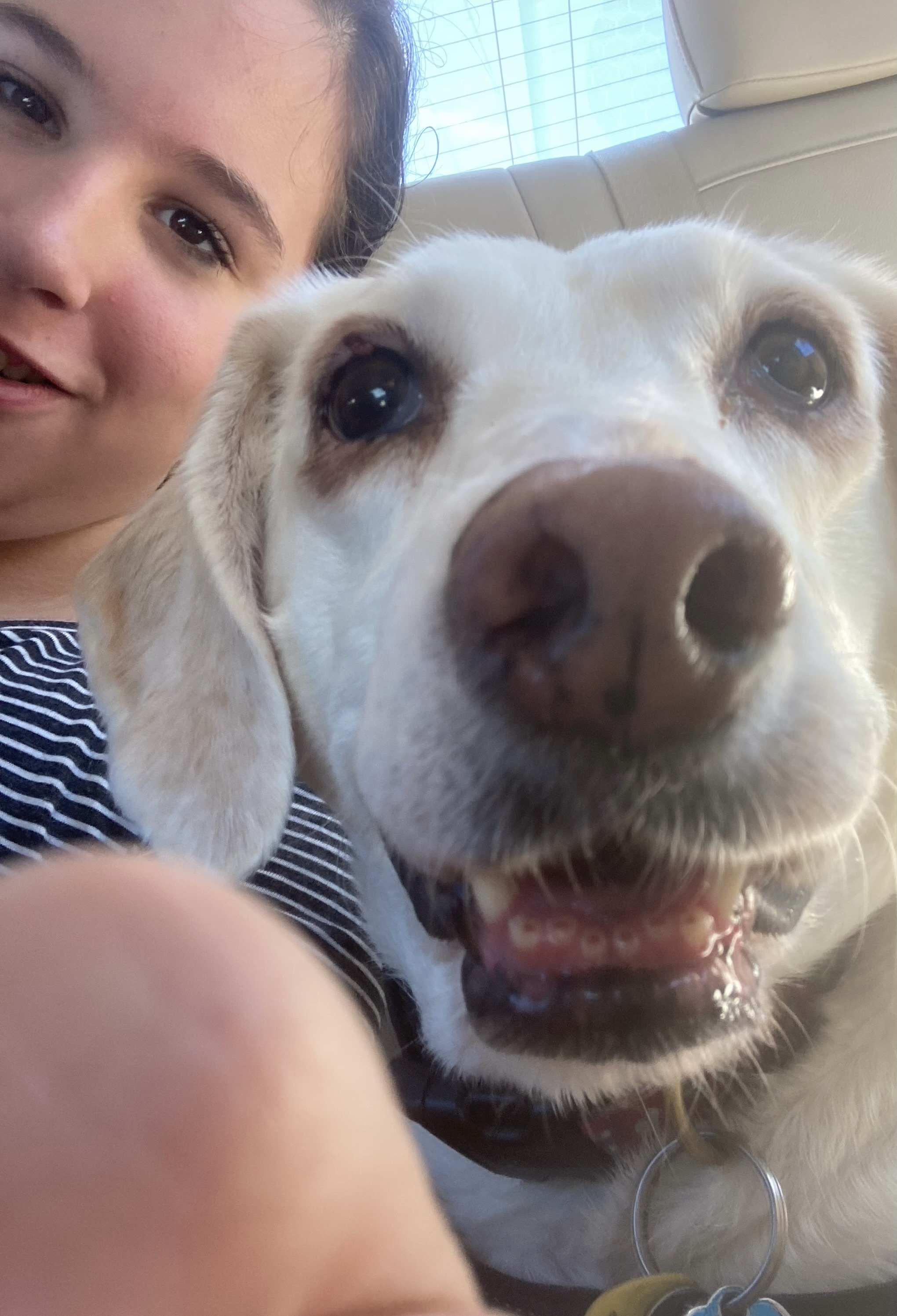 I am very grateful for Hazel because she is a dog that helps me calm down and my anxiety goes away when I rub her and love on her. About a month ago we found out that Hazel has diabetes and she has to have a shot twice each day. We give her a paper plate with peanut butter on it so she is distracted and then she gets her shot. Hazel is my favorite dog EVER, she helps me so much.