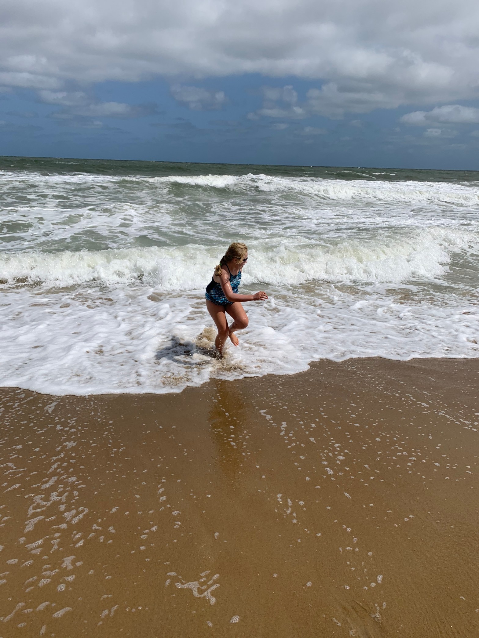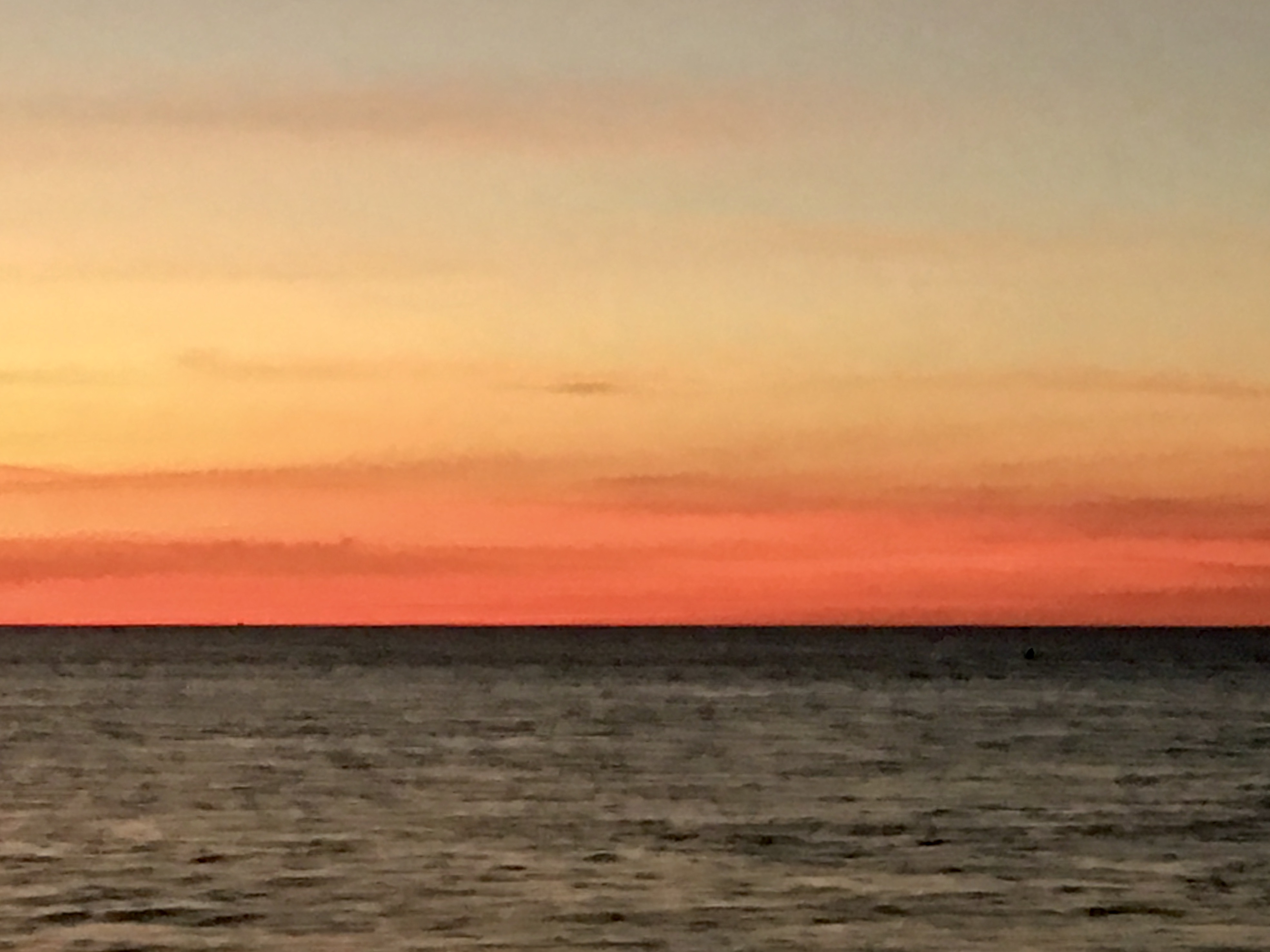 Further down the beach, I take in the ocean’s thundering waves and wild tide. Soon the sun reaches her peak in the sky, proving time really does fly. With amusement I watch gulls harass fishermen before soaring off with a mocking cry. And playful dolphins gliding along the sparkling sea like it’s a roller coaster ride.