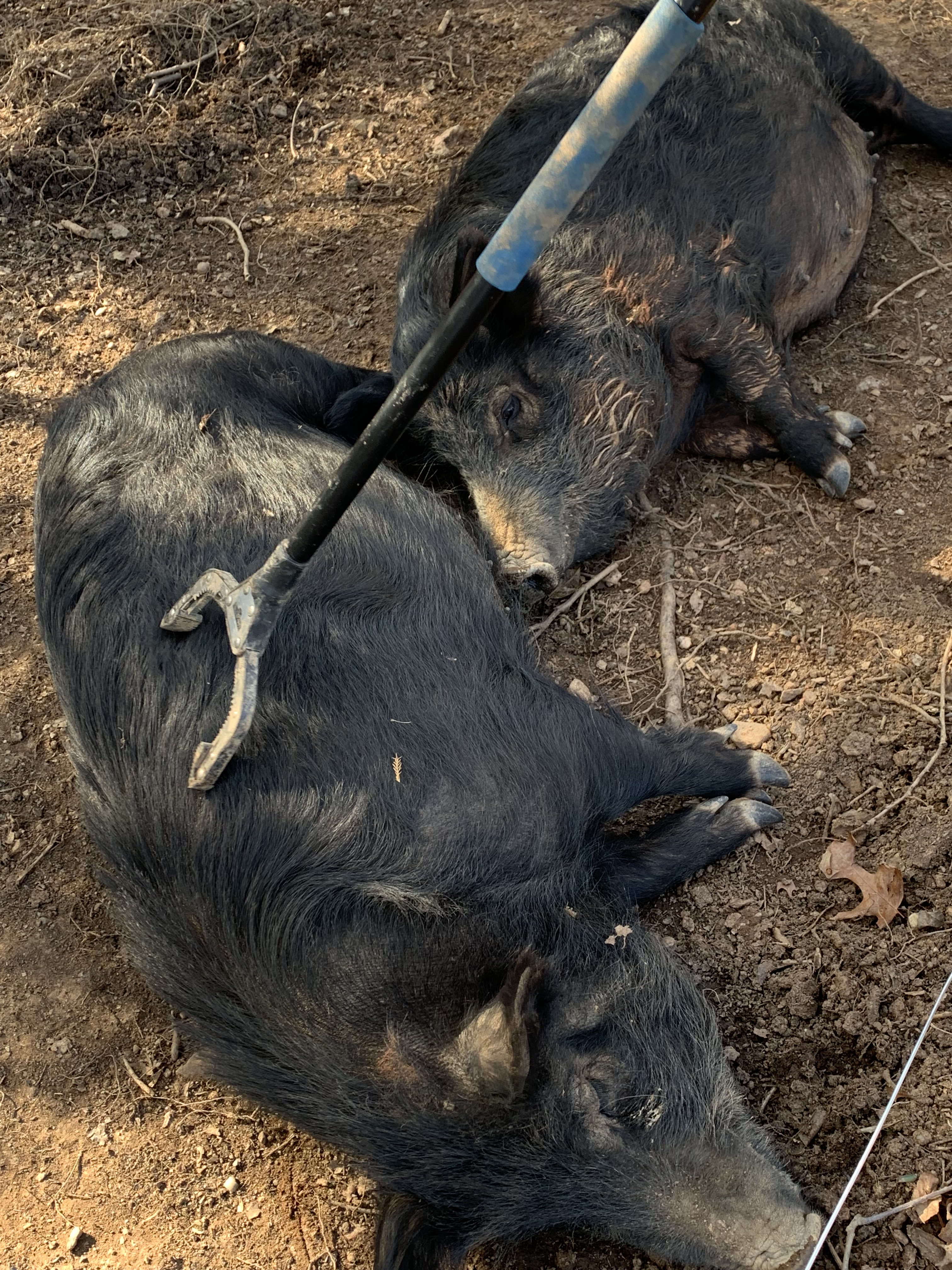 A few months later… We converted Larry over with the girls, and one day papa was rubbing Larry’s side when suddenly Larry rose up on his back legs, he slammed papa, scraping his arms, legs, and thighs. Papa also fell against the golf cart. He whacked Larry over the head with the grabber.