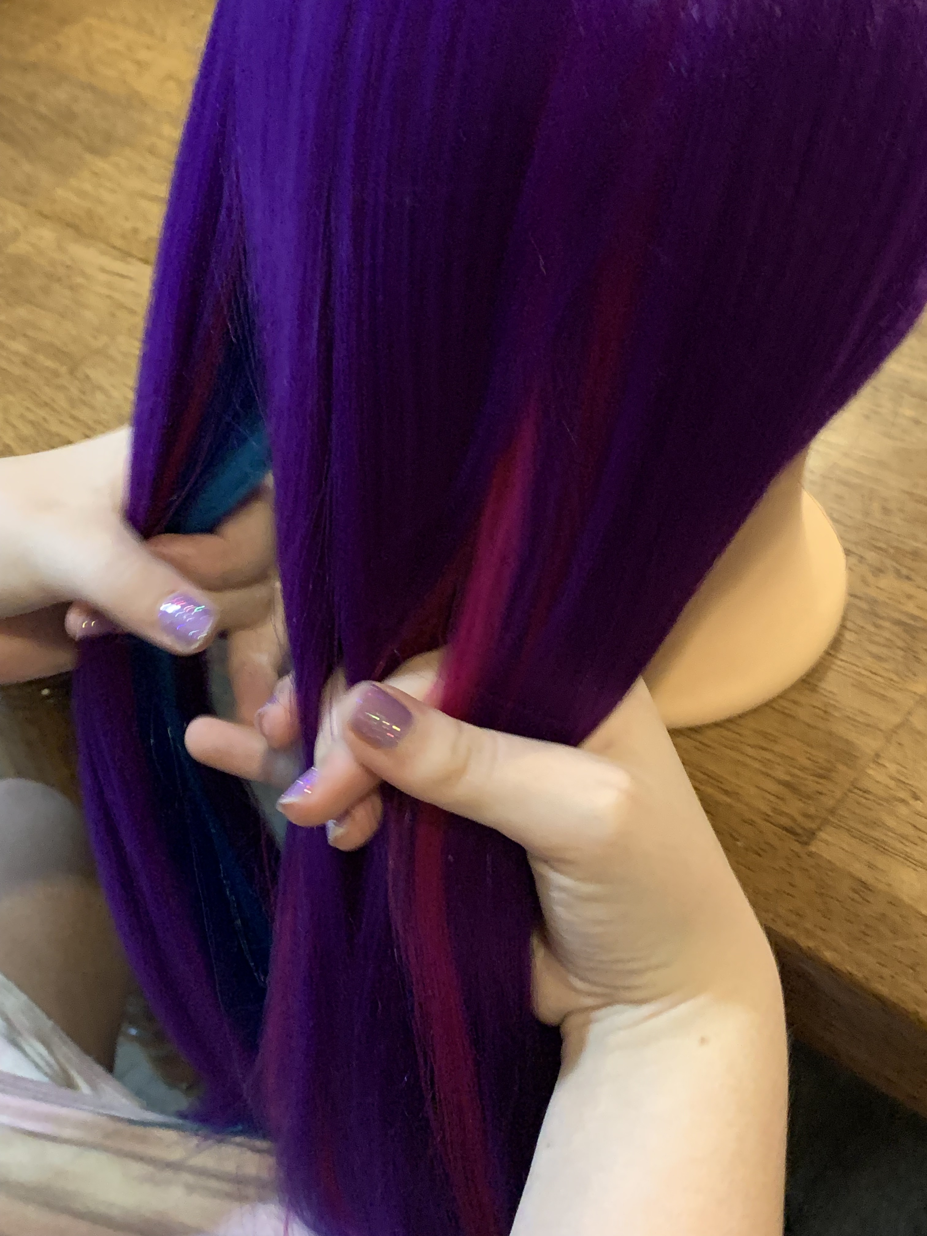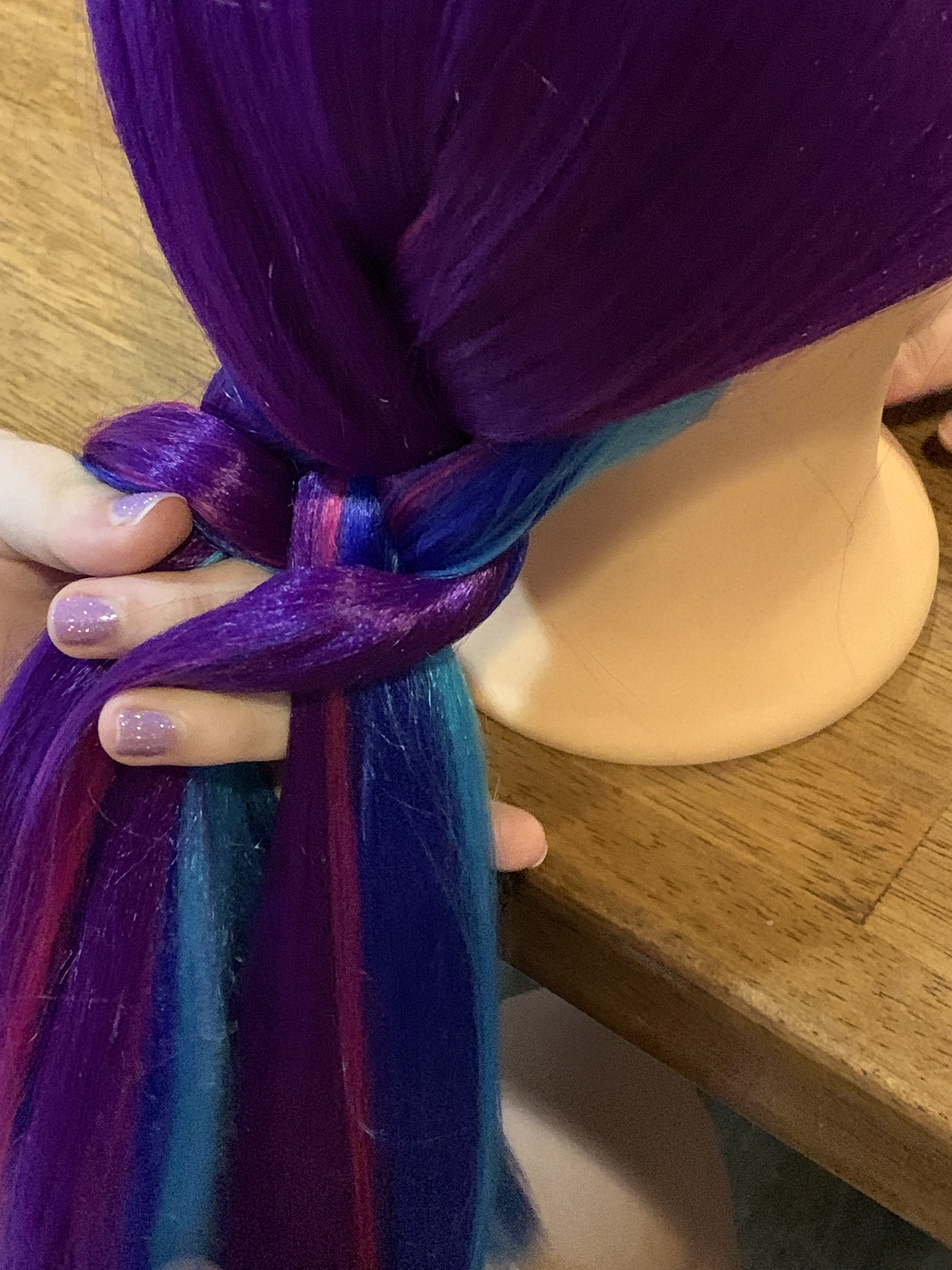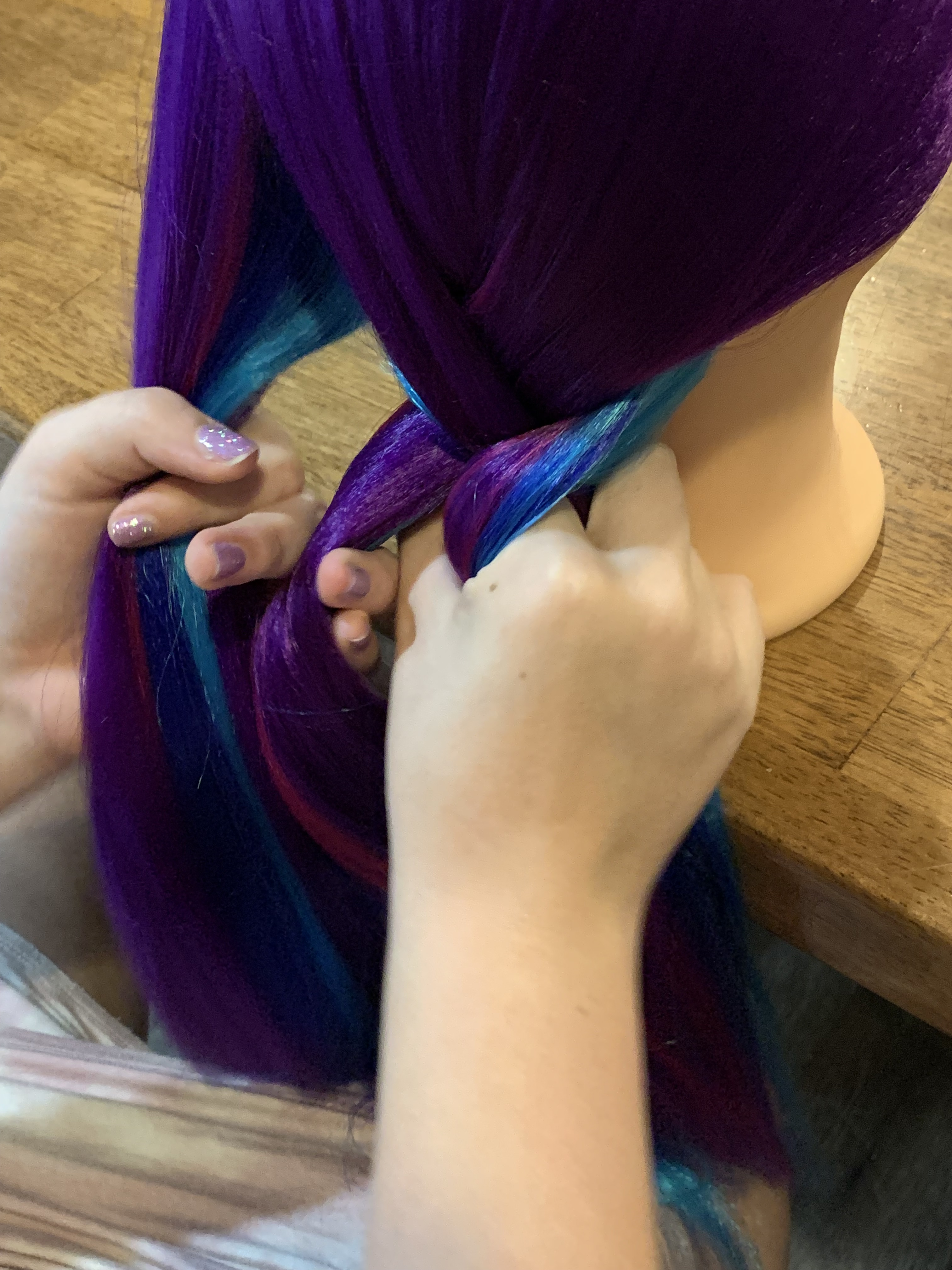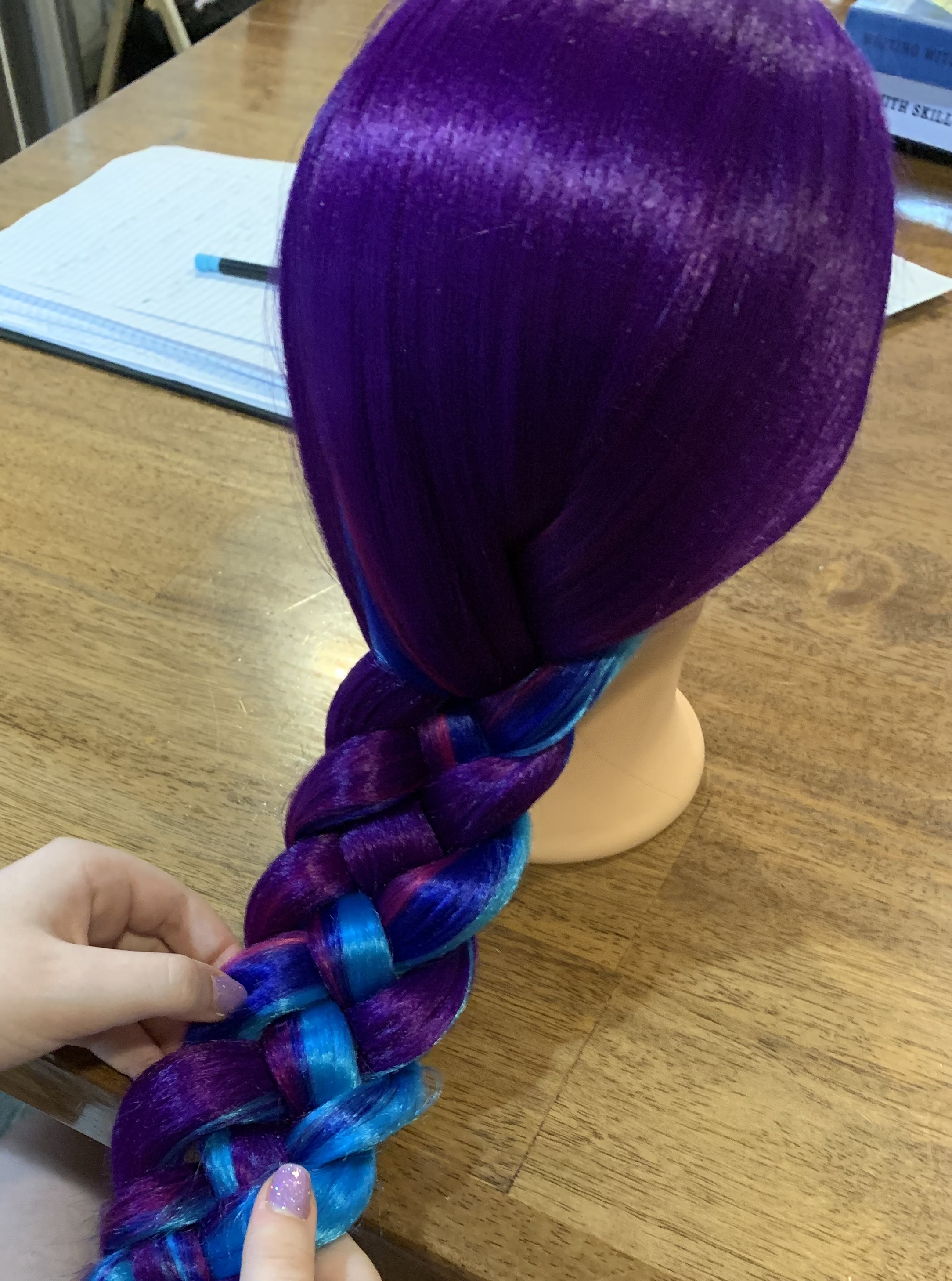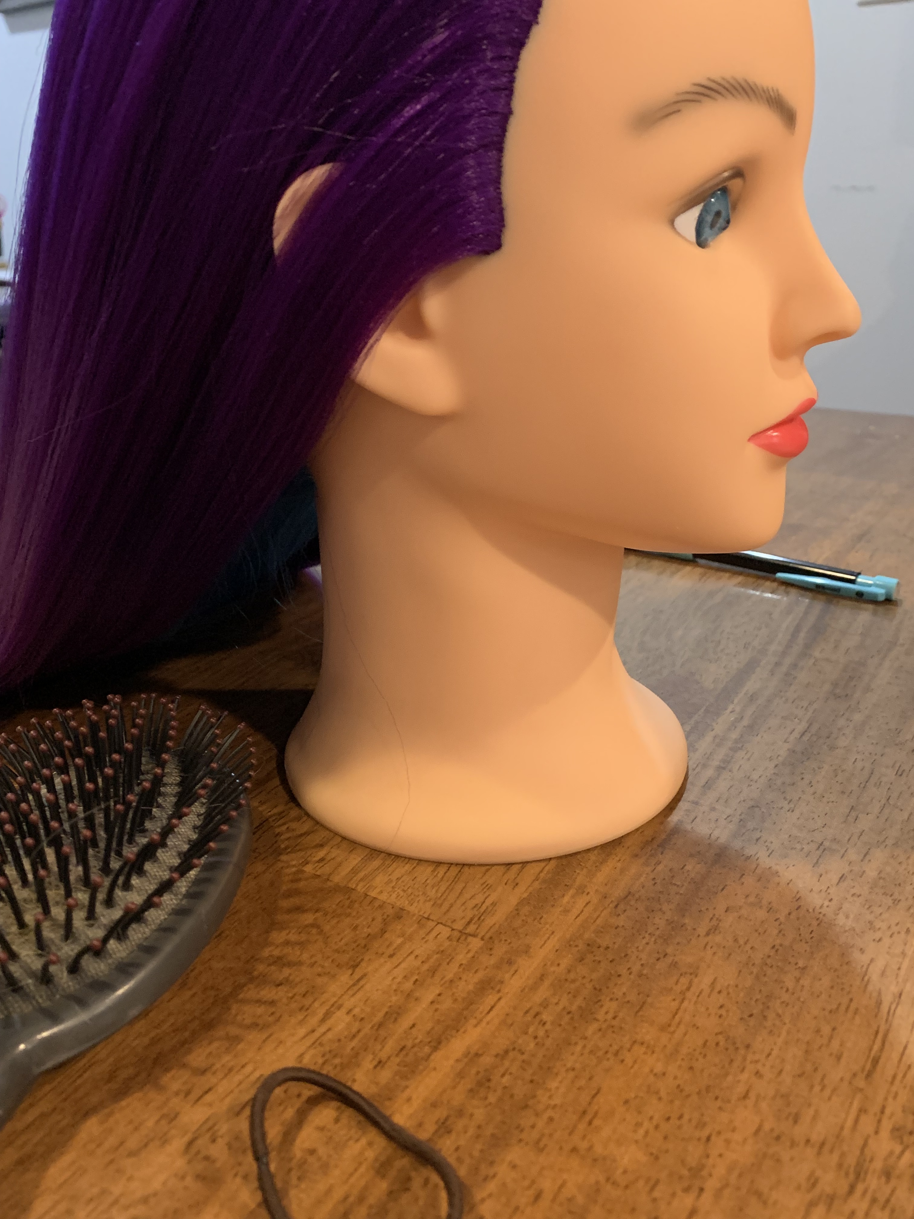 The first two steps to any braid is to find some medium to long length hair (in my case my mannequin head) and thoroughly brush it out! After this you will begin by sectioning your hair into four even strands and keeping them separate you want to comfortably hold them in your hands.