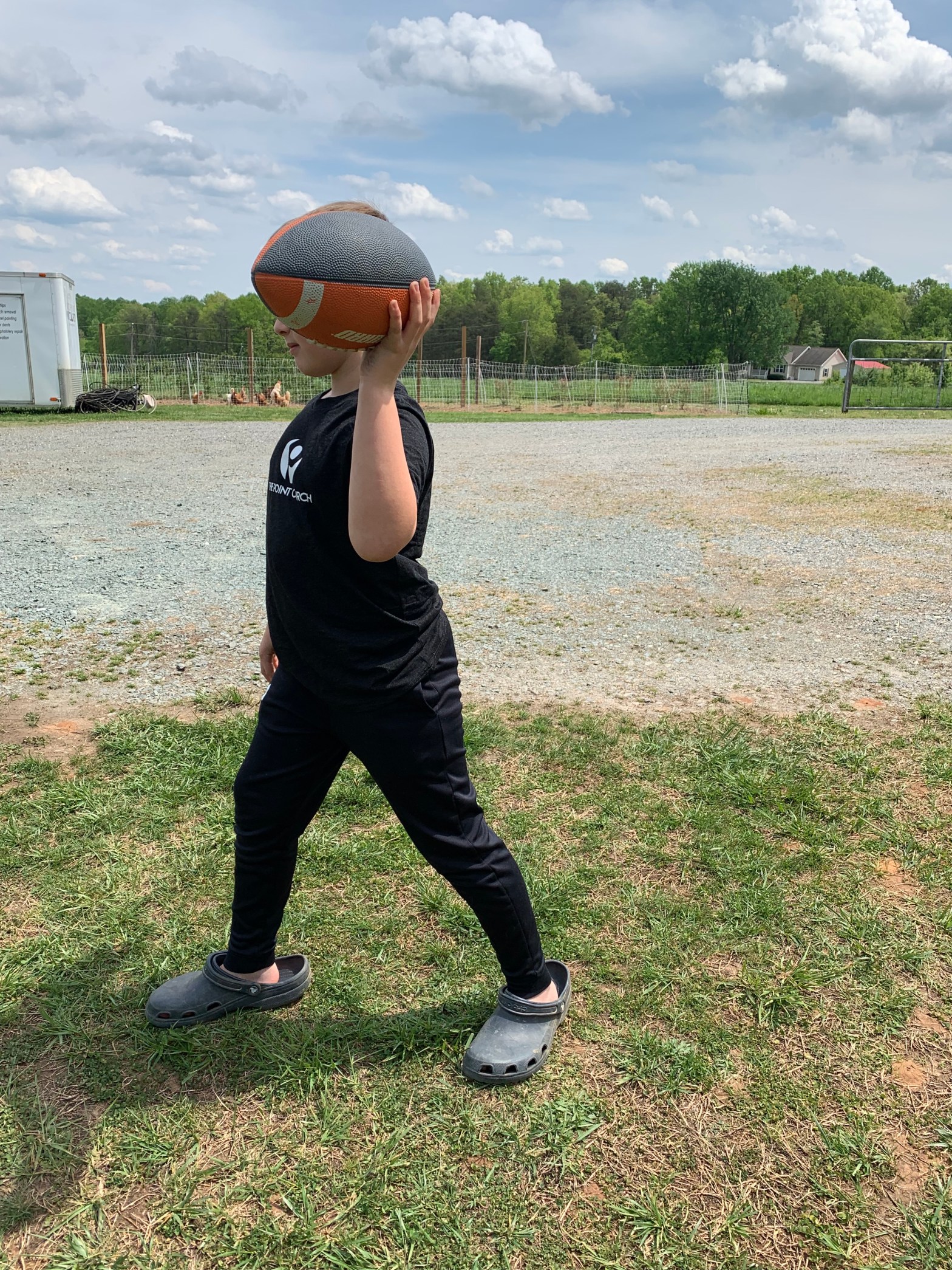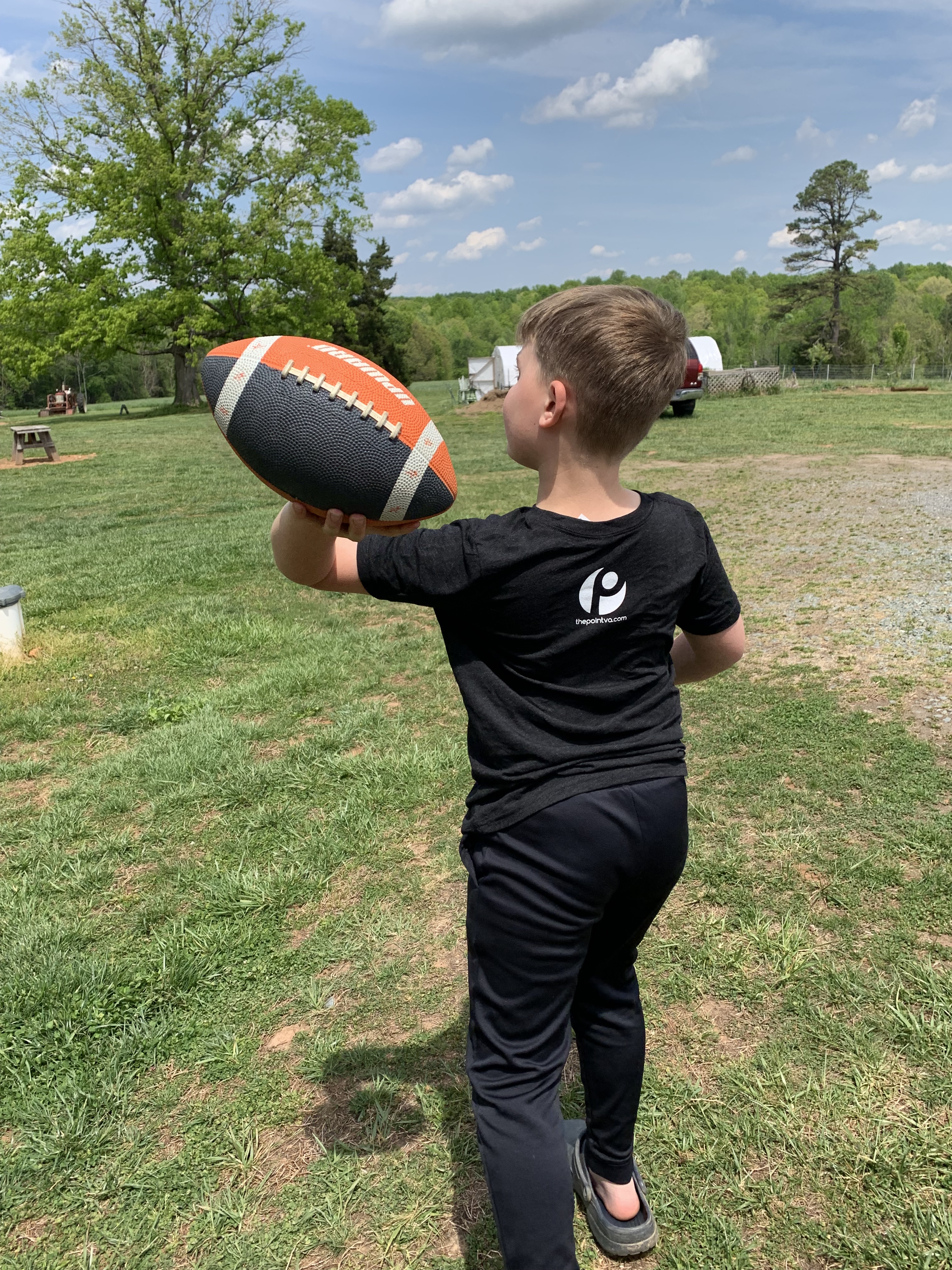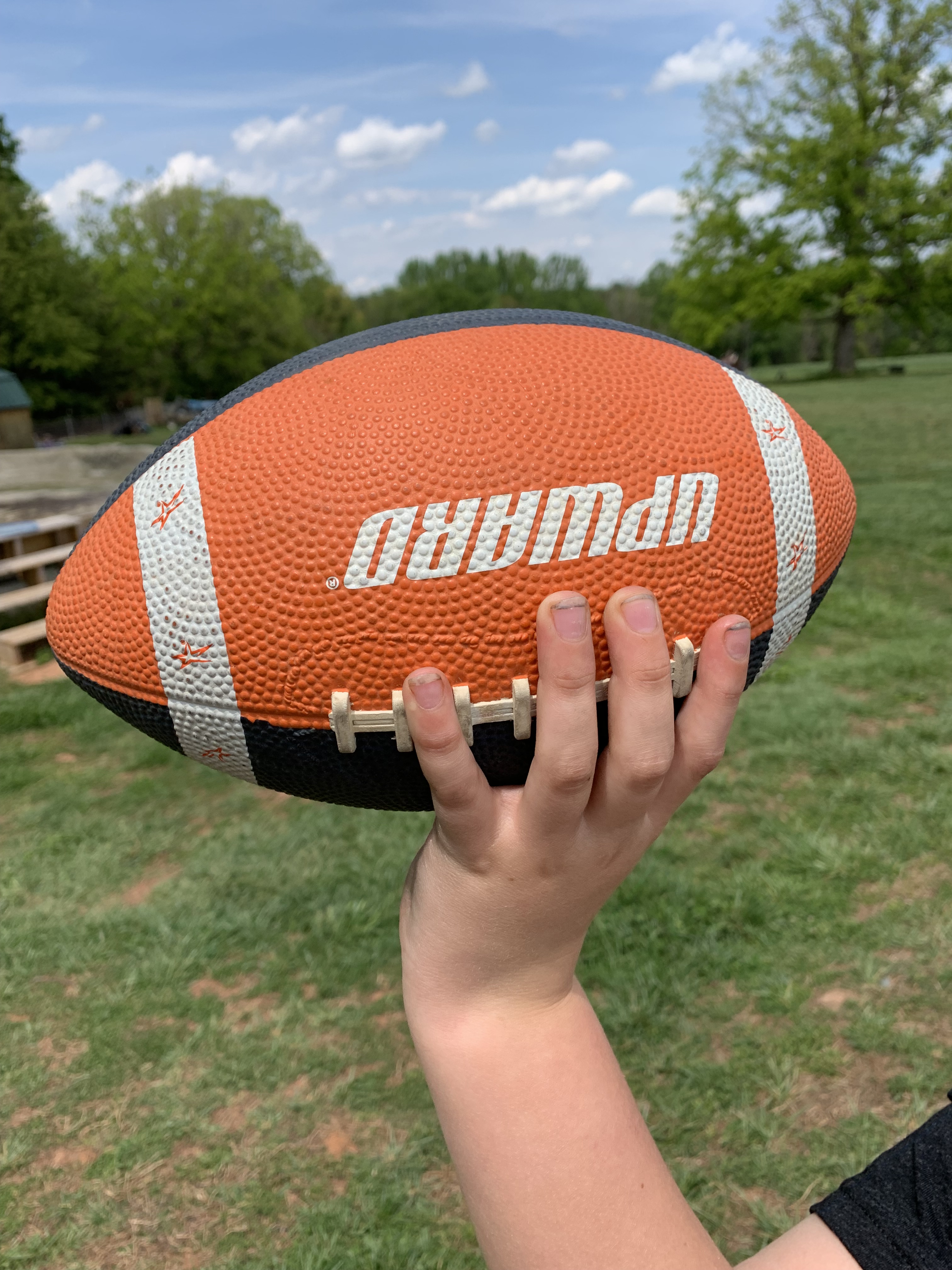 I’m going to teach you how to throw a football. First you have to see the person in front of you. Never throw a football when the person is looking away. When you throw the football, you put your leg in front of you (like taking a step forward) to give it more thrust. Your hand can be anywhere on the football, but most grownups usually put their hands on the leather laces for your fingers. When you release it, the ball should be aimed at the person you are looking at. The ball should be in a nice spiral when you throw it. If you have a good throwing arm, a comfortable spot on the ball, a good stance, and lots of practice, you could be a really good quarter back in football!